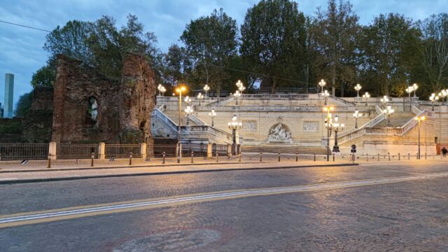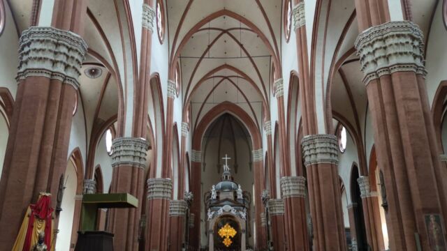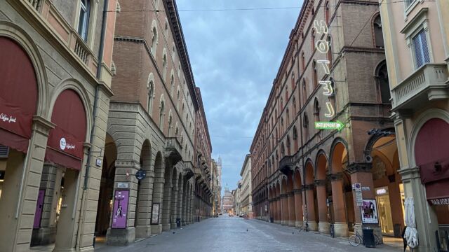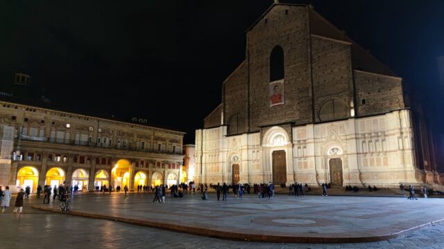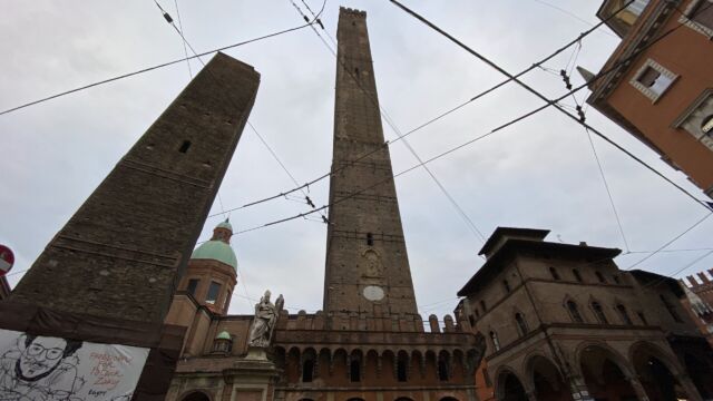 V brzkých ranních hodinách jsme se nechali znovu dovézt do centra expressem, zkusili jsme využít naši zpáteční jízdenku a kupodivu platila (ale vyčerpali jsme tím cestu z centra na letiště 🙂 ). Ranní Boloňa je krásná, kolem 7. hodiny je ještě vše hezky nasvícené, zároveň je už vidět i denní světlo, ale hlavně NIKDE ANI NOHA! Jen nechutné pozůstatky včerejšího večera v podobě neskutečného množství skleněných lahví, obalů od pizzy a ulepených dlaždic na zemi úplně všude po celém centru. Naštěstí jsou zde technické služby velmi čilé a většinu marastu zvládnou uklidit dřív, než se většina obyvatel vůbec probudí. Dokud bylo město jen naše, prošli jsme pěší zónou až ke Katedrále sv. Pietra (Cattedrale Metropolitana di San Pietro) a od té jsme se uličkami dostali ke Dvěma věžím (Le due torri). Zřejmě kvůli všemu tomu popíjení mají Italové trochu problém udržet rovinu, takže i tyto věže se naklání stejně jako ta v Pise (a nejsou ve městě jediné).