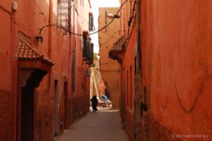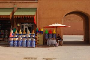 Marrakech / Marakeš, kupodivu ne hlavní město Maroka, byl výlet trochu hektický. Na vlastní pěst zajištěné autobusové spojení směrem do Marakeše bylo potěšením. Jízdenky koupené den předem, abychom vyrazili v ranních hodinách, najednou měly být na autobus odjíždějící později. Když jsme vykomunikovali co se nám nelíbí, prodejce lístky roztrhal, vzal nás k jinému autobusu, půjčil si jiné jízdenky a ty nám vrazil do ruky s tím ať si nastoupíme. Mohli jsme tedy jen doufat, že vůbec jedeme do správného města. Jak jsem psal o něco výš, odjezd byl celkem tragický, naplnit autobus pokřikováním na náhodné kolemjdoucí se řidiči stejně nepovedlo, ale po hodině (celkem stresující, jelikož jsme netušili jestli se někdy vůbec pojede) nakonec z města vyjel. Zhruba v polovině cesty byla „čůrací“ přestávka. Autobus zastavil ve vesničce uprostřed hor a lidé najednou začali vystupovat. Asi běžný postup, pro neznalé celkem sázka do loterie, jestli se stihnou vrátit zpět. Všichni brali pauzu jako samozřejmost, do autobusu naběhli prodejci vody a občerstvení a my doufali, že se ještě bude pokračovat dál a není to konečná. Po příjezdu do Marakeše si cestující zhruba každých 100 metrů diktovali, kdy by chtěli zastavit, a řidič jim samozřejmě vždy vyhověl, takže plánovaný příjezd do centra se protáhl o další hodinu. Na marakešském autobusovém nádraží jsme raději zakoupili o něco dražší lístky na autobus CTM, který vypadal v porovnání s tím naším úplně luxusně, bohužel odjezd byl z jiného místa, ale taxikáři údajně ví odkud. Podnebí je ve městě znatelně teplejší a vnitrozemské, vše bylo mnohem sušší, za to my zpocenější. Památky k vidění jsou asi volbou každého individuálně, my se zastavili u nejstarší mešity, několika „obyčejnějších“ mešit, cestou jsme prošli přes hezky udržovaný park se spoustou záchranného stínu, ke královskému paláci, který byl bohužel nedostupný. Některé památky také na mapě vypadaly obří, a ve výsledku jsme je přešli, ani jsme netušili jak. Zajímavé jsou i stavební úpravy, uličky podle mapy vůbec nesouhlasily, když jsme uviděli probouraný dům a novou cestu skrz něj, pochopili jsme proč. I v těch nejužších uličkách mezi domy ale potkáte místní na skútrech a mopedech. Taxikář se na adresu odjezdu autobusu tvářil poměrně nechápavě, ale někam se rozjel a skončili jsme správně. Cesta „domů“ byla rozhodně pohodlnější a po horské dálnici. Podle odstavných pruhů plných stojících aut dávají prudká stoupání a klesání vozovému parku maročanů řádně zabrat.