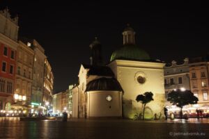 O Krakově se proslýchá, je je to krásné město. Ubytovali jsme se v docházkové vzdálenosti od centra v čemsi připomínajícím studentské koleje. V budově sídlily různé hotely rozdělené podle pater, ten náš Premium Hostel byl nově zrekonstruovaný, takže ubytování hezké. Cena velmi příznivá a vlastní koupelna na pokoji byla v této cenové kategorii opravdový nadstandard. Oproti Vratislavi ale už na první pohled město nepůsobilo tak příjemně. Nejznámější hlavní náměstí – Rynek Glowny – je nejhezčí nasvícený v noci, přes den ani tak zajímavě nevypadá, stejně tak kašna, která byla ve dne plná odpadků. Většina památek a zajímavostí je roztroušena v okolí tohoto náměstí, za jeden den se v klidu nechají projít. Radniční věž vypadala, že bude poskytovat pěkný výhled, ale kromě několika místností uvnitř věže jsme toho moc neviděli. Výstup po extra úzkých schodech byl sice vtipný, ale některá okna byla zakrytá plakáty a z jiných prostě nebylo nikam vidět, takže zklamání. Do krakovského podzemí jsme se bohužel nedostali, vstupenky byly (i mimo hlavní sezonu) vyprodané na několik dní dopředu. Směrem k řece Visle je hezký královský hrad/zámek Wawel, z něj se pak nechá za pár zlotých sejít dolů k řece Dračí jeskyní (Smocza jama), na konci u východu čeká drak chrlící oheň. Během cesty na hrad jsme zaskočili ještě do zrcadlového bludiště, které bylo řádně výživné. Celkově mě město svou atmosférou příliš nenadchlo, Vratislav oproti Krakovu byla mnohem milejší a příjemnější. V hotelu jsme zahlédli leták na exkurzi do solných dolů Wieliczka (Vělička) a cestou domů jsme se zde zastavili.