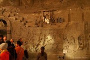 Exkurze ve Věličce byla z krakovska to stoprocentně nezjajímavější a nenechte si jí ujít, i když není zrovna levná. Průvodci rozdělení podle skupin mluví asi 5 jazyky, angličtina je samozřejmě na výběr. Po sestupu asi 150 metrů pod zem se ujde v dole několik kilometrů chodbami a místnostmi kde se těžilo, vše je krásně zachovalé a upravené, sůl se může klidně olizovat ze zdí 🙂 . Některé místnosti jsou obrovské a lidé zde v podstatě žili, vytvořili si zde ze soli kromě oltářů i sochy a celkově hezčí prostředí. Doly dělají dojem trochu jako z Pána prstenů, ale davy turistů ho zase trochu kazí. Vzduch je v podzemí sice teplý, ale díky soli velmi příjemný a zdravý na dýchání – to je hlavní rozdíl oproti uhelným dolům, na povrch vylezete zdravější. Na závěr je připraven stánek se suvenýry, jídelna a podzemní muzeum. Kdo se účastnit již nechce, může vyjet pravým hornickým výtahem na povrch – stovky schodů určitě šlapat není dobrý nápad a myslím, že to snad ani nebylo možné. A z dolů zase zpět do Prahy!