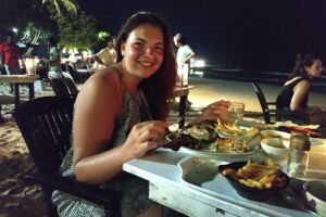 Definitivně poslední válecí den na pláži byl opět krásný. U snídaně jsme potkali český pár, který zde svou cestovatelskou dovolenou teprve začíná a my jsme rádi, že jsme si to nejlepší nechali na konec… Mužský člen je prý meteorolog a vysvětlil nám, že většina aplikací používá stejný americký nepřesný model předpovědí, evropský je prý lepší a samozřejmě je třeba zohlednit při zkoumání jak bude i řadu dalších okolností – není to jen tak „kouknu a vidím“. Asi proto nám pršelo kde nemělo a naopak… Předali jsme pár našich zkušeností z vnitrozemí a popřáli šťastnou cestu dále, sami jsme se vyrazili ještě trochu opálit. Jáju jsem lehce přiutopil ve vlnách, až se z toho šla raději usušit na břeh za zvuku vulgární ostravštiny. Na oběd jsme vyrazili do doporučené zapadlé restaurace Dewmini roti shop. Je napůl turistická, ale uchovává si své vlastní kouzlo a na menu je popsán příběh a nelehký život majitelů. Majitelka je velmi příjemná a všechny hosty objímá a vyzvídá jestli se jim zde líbí. Jája okusila nejlepší peanut butter milkshake na světě – byl to prý přímo orgastický zážitek, já si dal raději jen čaj, ale i ten byl čirou náhodou s mlékem, tak jsem ho Jáje také přenechal a svou objednávku napravil. K obědu zkoušíme další verzi Kottu a moc nám chutná. Já odvážné zvolil pálivou variantu a omáčka k tomu mě zbavila schopnosti dýchat. Když se mé životní funkce po prvotním šoku vrátily k normálu, přišel jsem jí na chuť. K tomu ještě sladká Roti s arašídovým máslem a čokoládou jako zákusek a byli jsme uspokojení na celé odpoledne za nějakých 1500 rupií, cca 200 Kč.