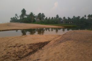 V ubytování Leatherback beach villa jsme trochu předčasně, a hlavně úplně jediní. Pokojík maličký, ale na přespání stačí. Vila je hezká, relativně nová a má super posezení na zahradě. Komáry se to tu v celé oblasti jen hemží a náš repelent je účinný tak z 50 %. Procházka po pláži odhalila, že jsme jediní běloši široko daleko, jelikož se zde nekoupe v moři vůbec nikdo. Pláž je díky slunci o trochu hezčí než v Trincomalee, ale turistický ruch tu neznají, takže ani čistá moc není. Zato jsme viděli jámu v písku a kolem spoustu malých čárek, jako by z ní želvičky ploutvemi prchaly do moře – že bychom se večer taky vydali na průzkum? Pan správce domu nám domluvil někoho, kdo nás k želvičkám kolem západu slunce vezme. Také se na pláži vyskytuje spousta vyplavených krabů a prázdných krunýřů, živých mlžů a krabů poustevníků. Na koupání to ale nevypadá a ani jednoho z nás to zde do vody netáhne. Zlatá Mirissa. Cestou k vile jsem si všiml asi půlmetrového varana u cesty.