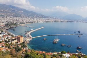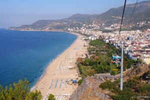 Přílet do turecké Antalye není ničím překvapující, letiště je moderní, podobné tomu pražskému, takže na cestujícího žádný šok nečeká. Dokonce ani papírové vízum není třeba vyplňovat, jen přibude nové razítko do pasu při kontrole. Přílet na konci října nám nepřinesl ani žádný teplotní šok, i když vyměnit podzimní bundy a kalhoty za tričko s kraťasy bylo vcelku příjemné. Cesta z Antalye do Alanye trvala malému autobusu asi 3 hodiny, i když je vzdálenost sotva přes 100 km. Na vině bylo jednak vysazování spolucestujících na hotelech, a také povinná „komerční přestávka“ v půli cesty. Myslím, že by se všichni ospalí cestující bez přestávky v klidu obešli 🙂